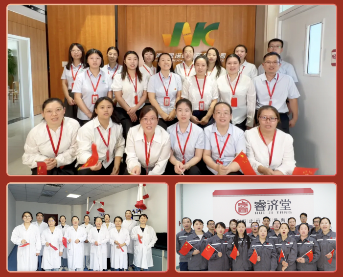 祖國的強盛,是中醫藥產業傳承發展的沃土;守護人民健康,是我們對祖國最實在的告白。這份對祖國的熱愛,早已融入睿濟堂的發展血脈。我們始終銘記“只做好中藥,健康天下人”的企業使命初心與“愛黨愛國、擔當奉獻”的家國情懷緊密融合。未來,公司將持續以黨建為引領,以紅色文化為滋養,把“愛國情、強國志、報國行”融入企業生產經營、科技創新、服務民生的全過程,懷揣家國情懷,在傳承中創新,讓中醫藥文化在新時代綻放光彩。